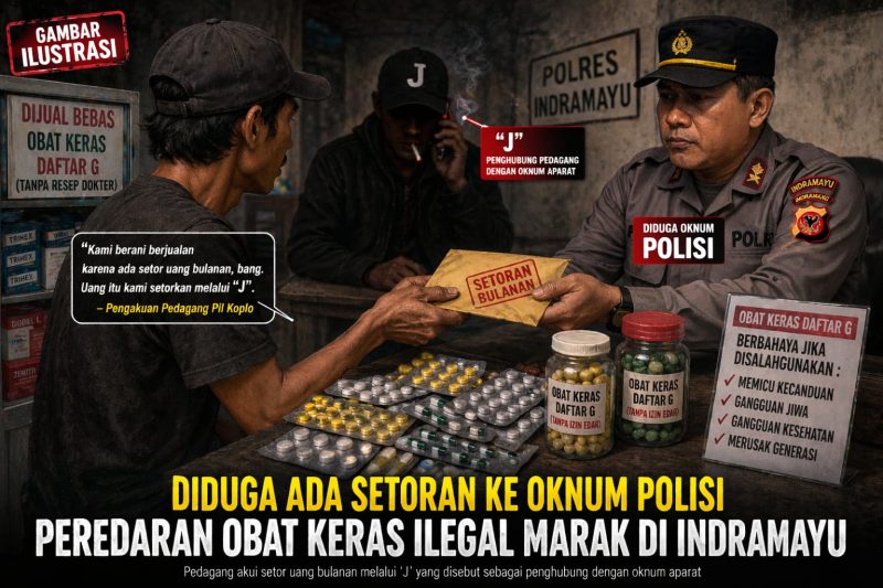 Indramayu, Sibernasional.com – Peredaran obat keras daftar G tanpa izin edar dilaporkan semakin marak di wilayah hukum Polres Indramayu. Praktik ilegal ini diduga berlangsung terang – terangan, bahkan disinyalir melibatkan oknum aparat sebagai “pelindung” aktivitas terlarang tersebut. Minggu (19/04/2026).