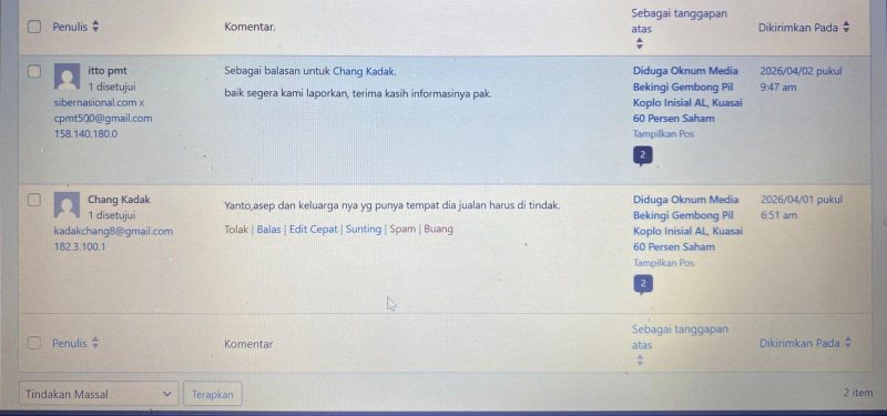 Parung Panjang, Sibernasional.com – Warganet mengomentari terkait pemberitaan yang kita terbitkan mengenai Gembong Pil Koplo yang berinisial AL,kuasai 60% saham di bisnis haram tersebut. Kamis (02/04/2026).