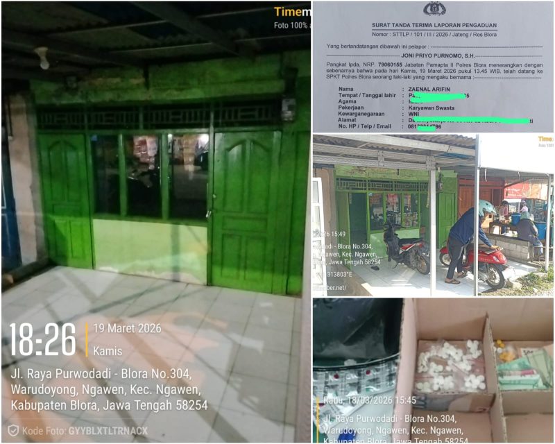 Blora, Jawa Tengah, SIBERNASIONAL.COM – Sebuah warung kelontong di Warudoyong, Kecamatan Ngawen, Blora, yang diduga menjadi sarang peredaran obat daftar G, mendadak tutup pada Kamis (19/3/2026) sore. Penutupan tiba-tiba ini memicu spekulasi kebocoran informasi, karena hanya berjarak beberapa jam setelah laporan resmi disampaikan ke Sentra Pelayanan Kepolisian Terpadu (SPKT) Polres Blora.